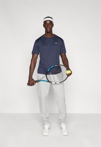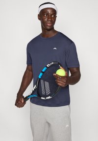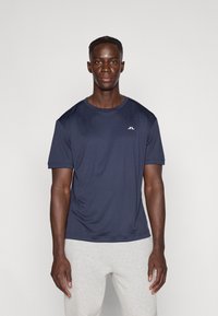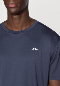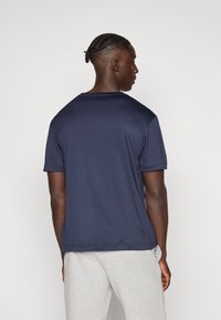 Αθλητική μπλούζα σε ναυτικό μπλε χρώμα, κατασκευασμένη από απαλό, ελαφρύ υλικό, με στρογγυλή λαιμόκοψη και κοντά μανίκια. Μικρό λογότυπο στο στήθος.