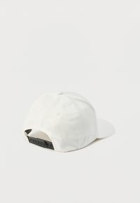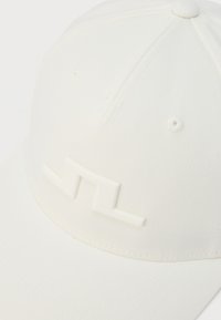 Λευκό καπέλο μπέιζμπολ με μικρό ανάγλυφο γεωμετρικό λογότυπο στο μπροστινό μέρος, εμφανιζόμενο πάνω σε απλό λευκό φόντο.