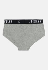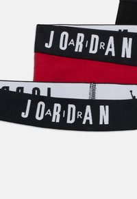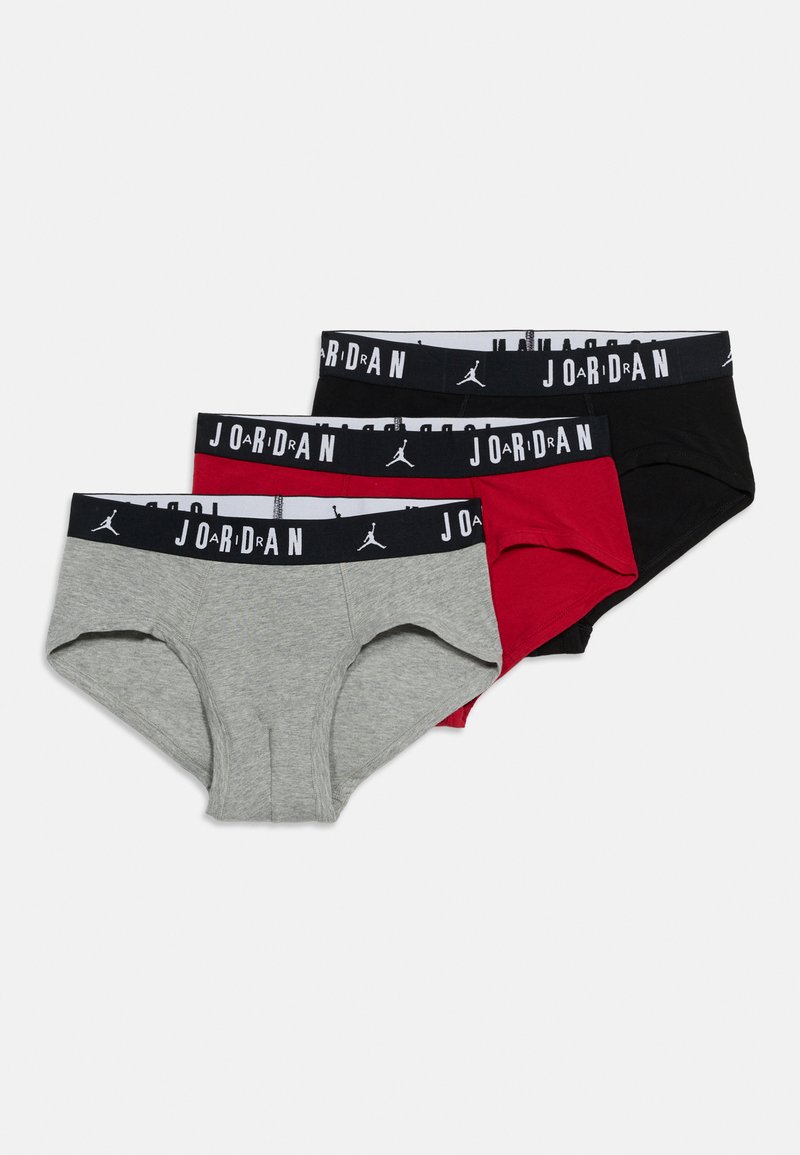 Τρία ανδρικά εσώρουχα σε γκρι, κόκκινο και μαύρο χρώμα με μαύρες ζώνες μέσης που φέρουν το λογότυπο Jordan και τη σιλουέτα Jumpman.