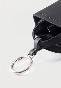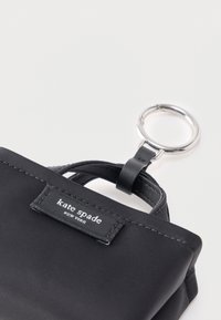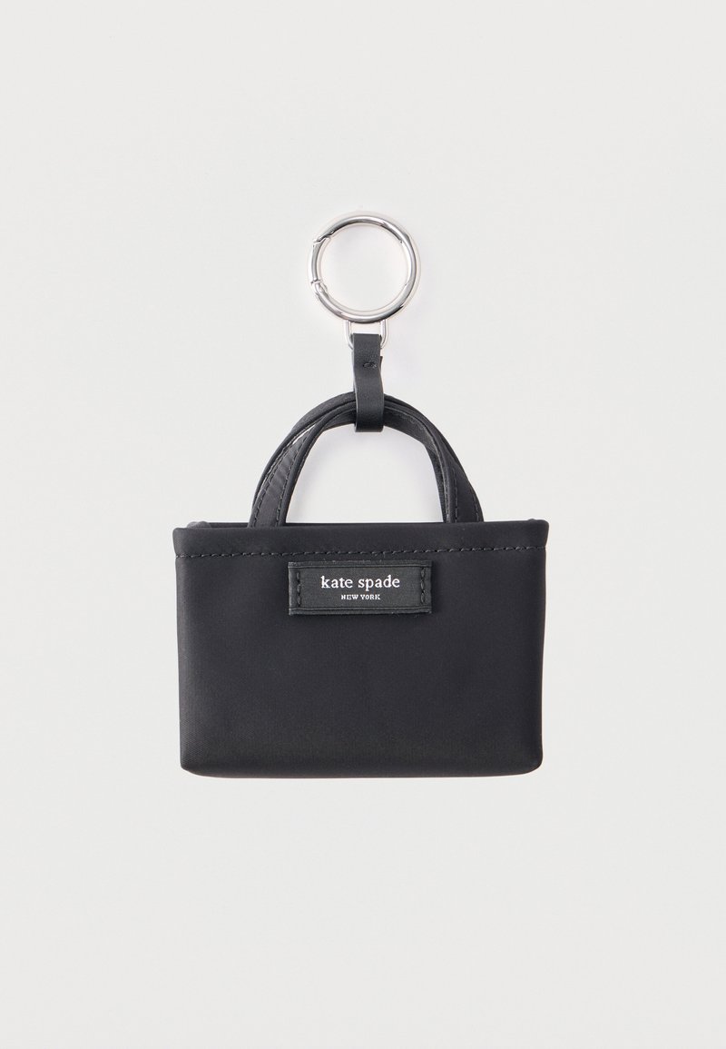 Μαύρο μίνι τσάντα tote μπρελόκ με διπλές λαβές και ασημένιο δαχτυλίδι, με ετικέτα «kate spade NEW YORK» στο μπροστινό μέρος.