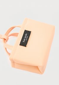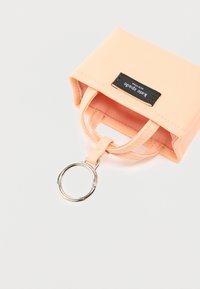 Μικρό μίνι τσαντάκι-μπρελόκ της Kate Spade σε ροδακινί χρώμα, με διπλές λαβές και ασημένιο κρίκο προσαρτημένο.