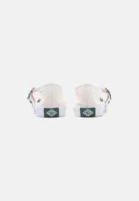 Λευκό παπούτσι Mary Jane από καμβά με λουράκι με πόρπη, λαστιχένια σόλα και πράσινο λογότυπο κροκόδειλου στο πλάι.