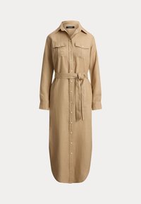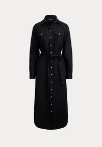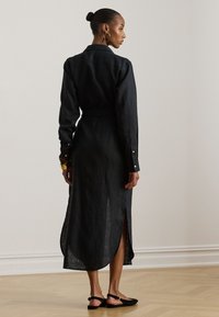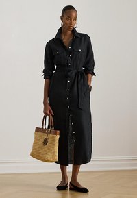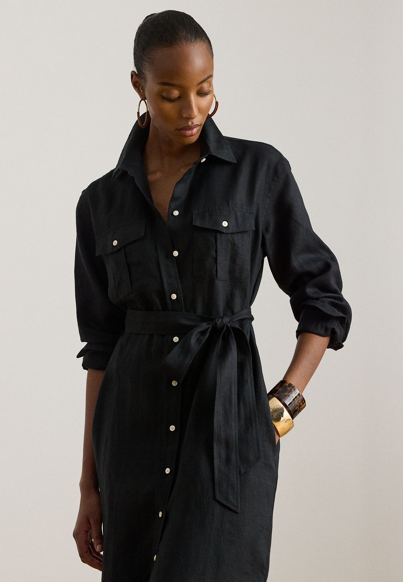BELTED LINEN MIDI SHIRTDRESS - Φόρεμα πουκάμισο - black
