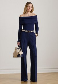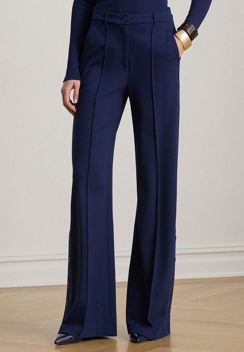 BUTTON-TRIM PONTE WIDE-LEG PANT - Wide leg - refined navy