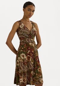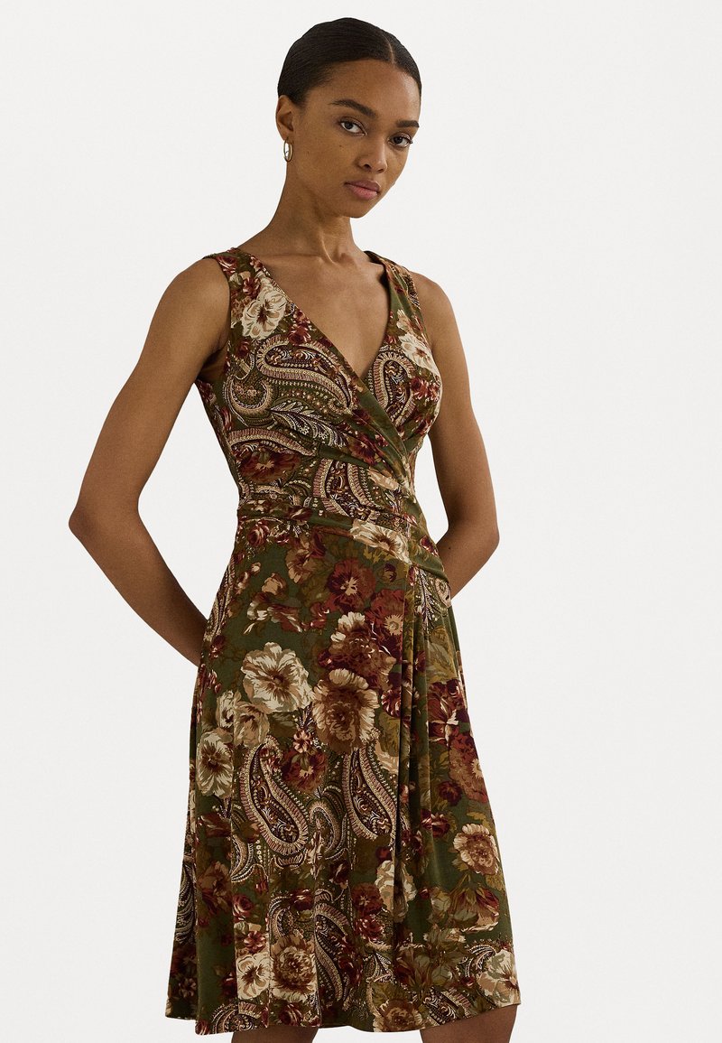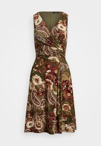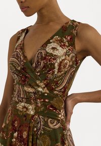 FLORAL SURPLICE JERSEY SLEEVELESS DRESS - Φόρεμα από ζέρσεϊ - olive multi