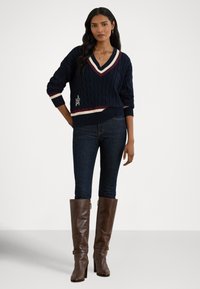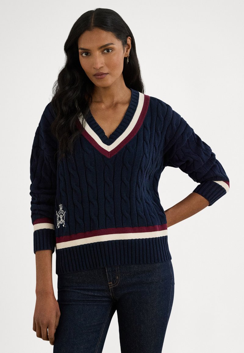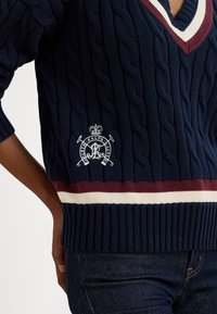 CABLE-KNIT COTTON CRICKET SWEATER - Πουλόβερ - lauren navy/cream/dark garnet