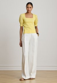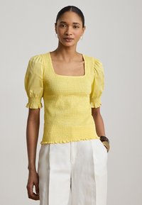 SMOCKED COTTON JERSEY PUFF-SLEEVE TOP - Μπλούζα - lemon sorbet