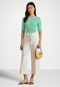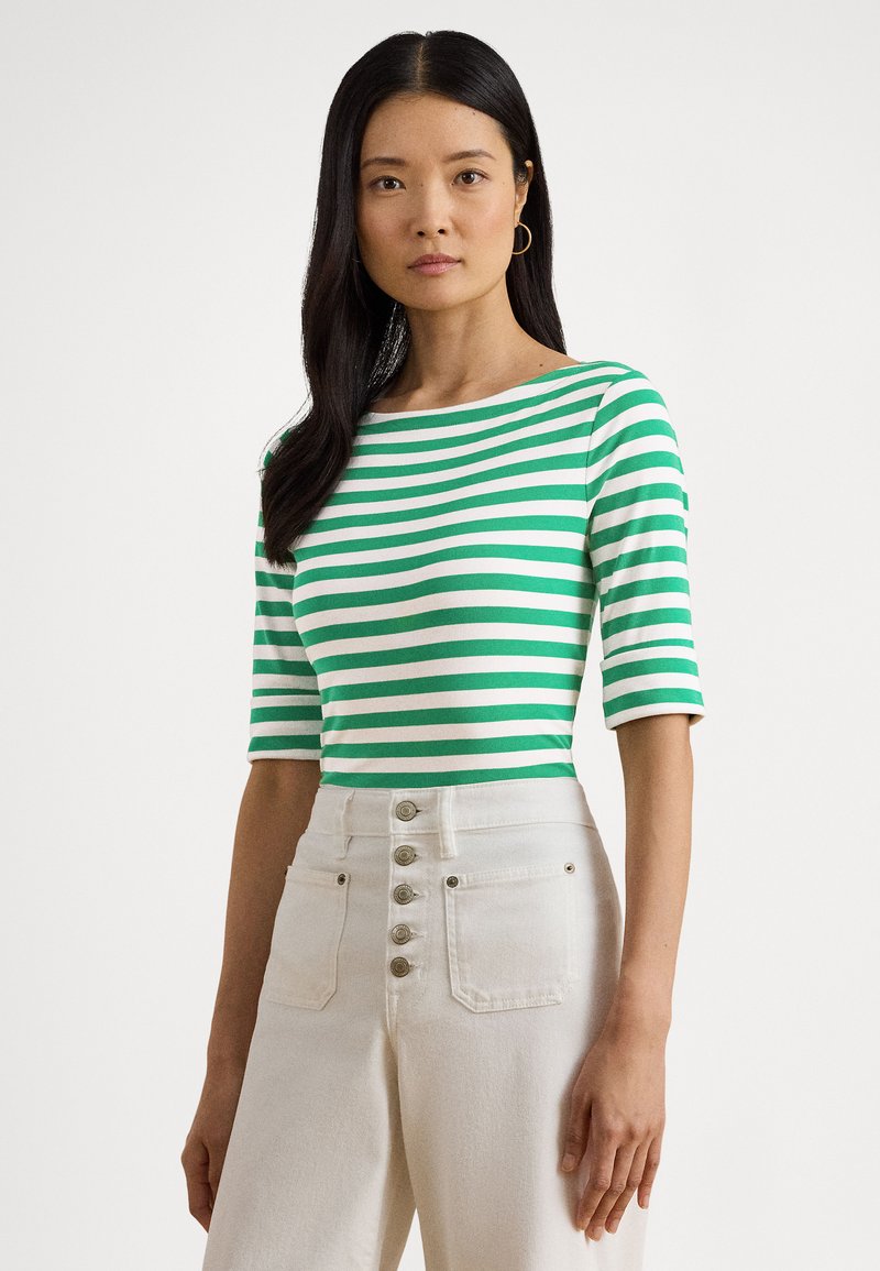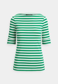 STRIPED STRETCH COTTON BOATNECK TEE - Μπλουζάκι με στάμπα - stem/white