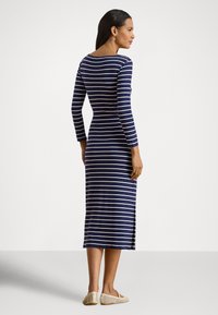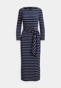 STRIPED TIE FRONT COTTON BLEND DRESS - Φόρεμα από ζέρσεϊ - refined navy/white
