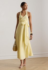 STRIPED TIE FRONT LINEN MIDI DRESS - Φόρεμα ημέρας - yellow/white