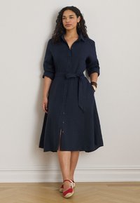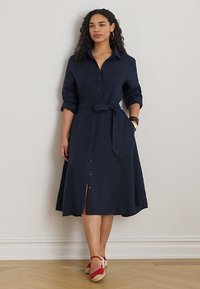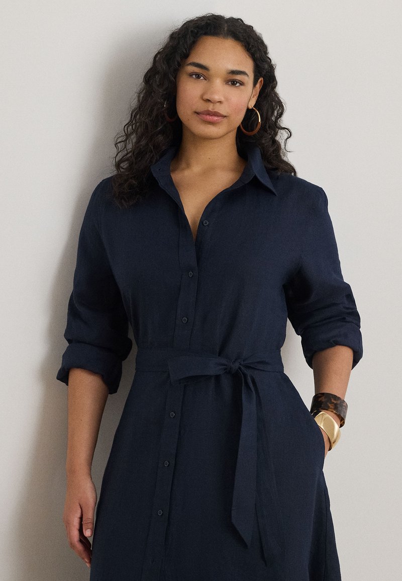 BELTED LINEN SHIRTDRESS - Φόρεμα πουκάμισο - navy