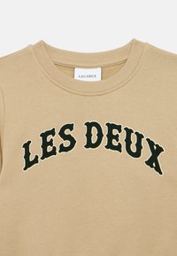 Μπεζ φούτερ κατασκευασμένο από απαλό ύφασμα με ριμπ λεπτομέρειες στη λαιμόκοψη και τις μανσέτες. Διαθέτει κεντητό το λογότυπο "LES DEUX" σε σκούρο πράσινο στο μπροστινό μέρος.