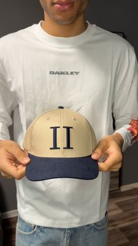 Μπεζ και ναυτικό μπλε καπέλο μπέιζμπολ με κεντητό ναυτικό μπλε «II» στο μπροστινό μέρος και καλλιγραφικό κείμενο στο πλάι, σε απλό ανοιχτό φόντο.