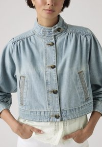 Προσφοράheart_outlinedTommy JeansCROP TRUCKER JACKET - Τζιν μπουφάν - denim light80,00 €Μέση Τιμή:149,95 €-47%