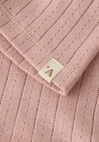 Ροζ σορτς για νήπια από ριμπ πλεκτό ύφασμα με μικρή πλαϊνή ετικέτα που φέρει το γράμμα "A" σε λευκό φόντο.