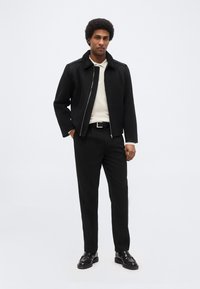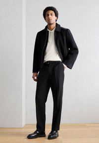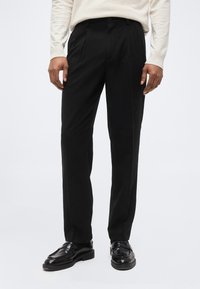 HERRINGBONE PLEATED PANTS - Παντελόνι - black