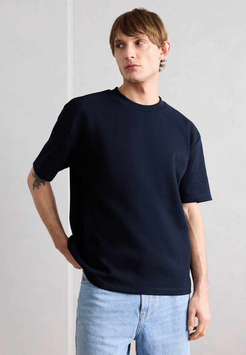 WAFFLE O NECK TEE - Βασικό μπλουζάκι - navy
