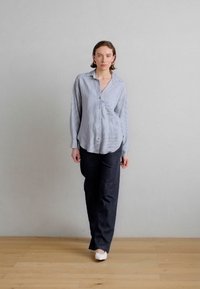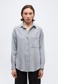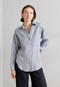 BLOUSE CASUAL FIT OPEN COLLAR LONG SLEEVE STRUCTURED STRIPES - Πουκαμίσα με κουμπιά - grey horizon