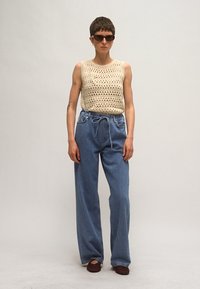 TROUSERS HIGH WAIST - Wide leg - medium blue
