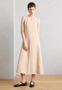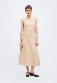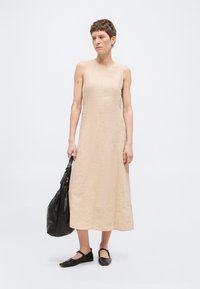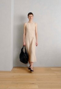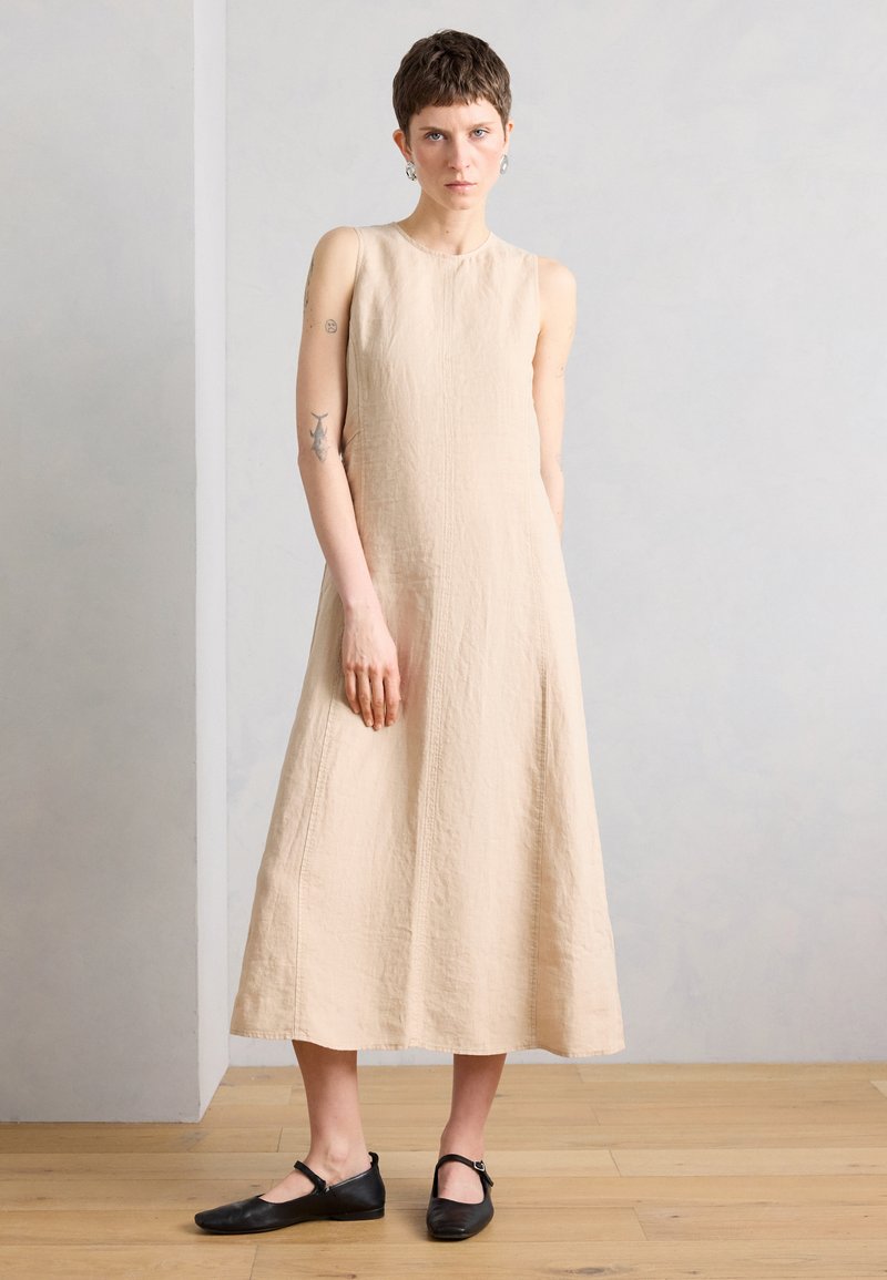 DRESS, MEDIUM LENGTH HIGH ROUND NECK PARTITION SEAMS TOPSTITCHING - Φόρεμα ημέρας - sandpaper