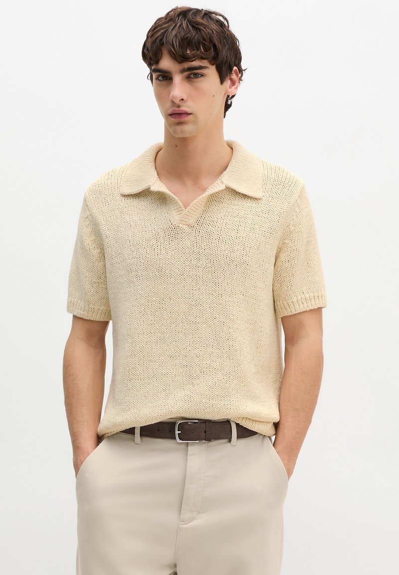 POLO, SHORT SLEEVE, OPEN COLLAR, TAPEYARN - Πόλο - linen white