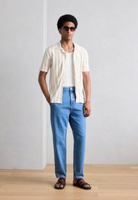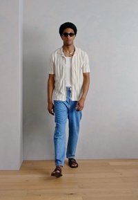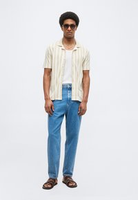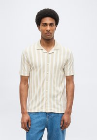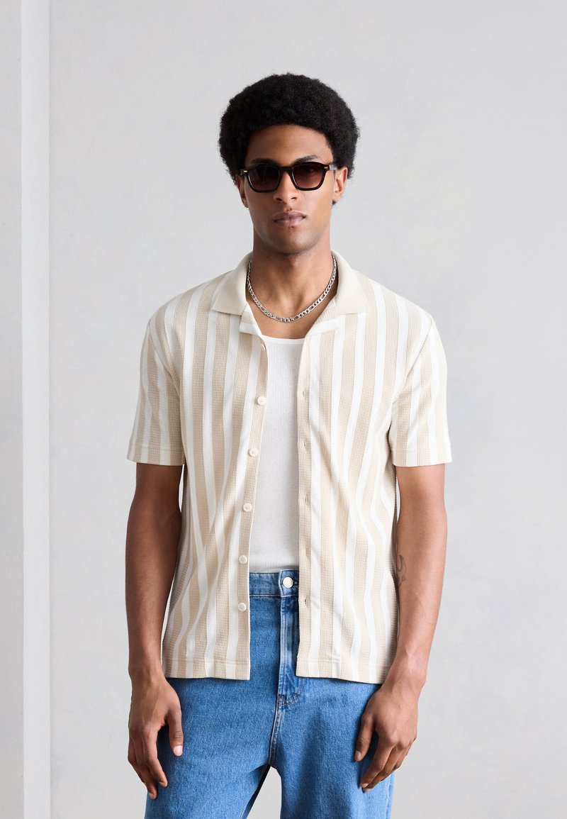 SHIRT SHORT SLEEVE HERRINGBONE STRUCTURED STRIPE - Πουκάμισο - white/beige