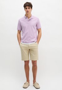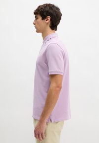 SHORT SLEEVE BUTTON PLACKET SLITS AT HEM EMBROIDERY ON CHEST - Πόλο - scattered orchid