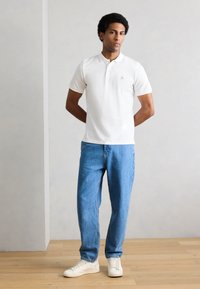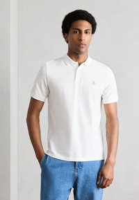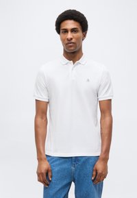 SHORT SLEEVE BUTTON PLACKET SLITS AT HEM EMBROIDERY ON CHEST - Πόλο - white