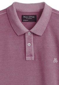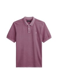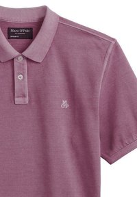 Ανδρικό κοντομάνικο πόλο πουκάμισο σε μαβί απόχρωση, με γιακά, μπροστινό άνοιγμα με δύο κουμπιά και μικρό κεντημένο λογότυπο "M OP" στο στήθος.