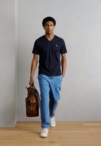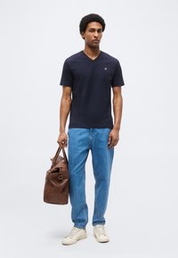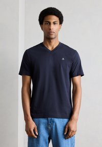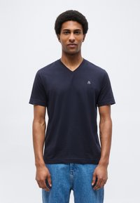 SHORT SLEEVE V NECK LOGO PRINT - Βασικό μπλουζάκι - dark navy