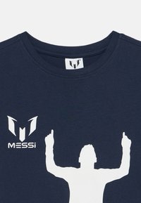 Ναυτικό βαμβακερό T-shirt με μεγάλη λευκή σιλουέτα ενός όρθιου figure με υψωμένα χέρια, συνοδευόμενο από το κείμενο "MESSi" σε λευκό.