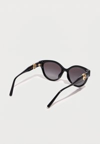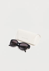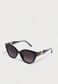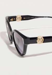 Μαύρα γυαλιά ηλίου σε σχήμα γάτας με σκούρους φακούς με κλίση και χρυσό λογότυπο Michael Kors στους βραχίονες, εμφανιζόμενα σε λευκό φόντο.