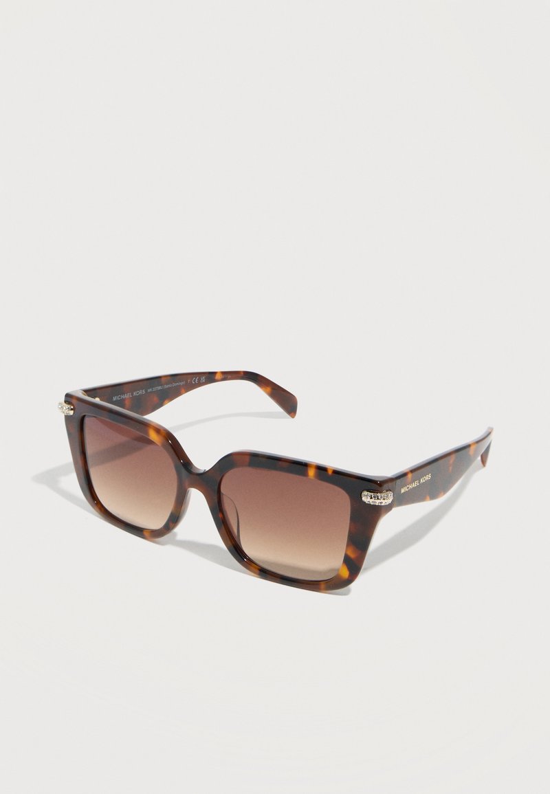 Τετράγωνα γυαλιά ηλίου με καφέ φακούς διαβάθμισης και μικρό διακοσμητικό έμβλημα στις βραχίονες, επωνυμίας Michael Kors.