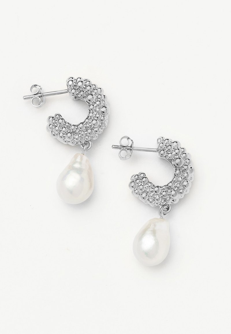PEARL BAYA SMALL HOOP DROP EARRINGS - Σκουλαρίκια - silver-coloured