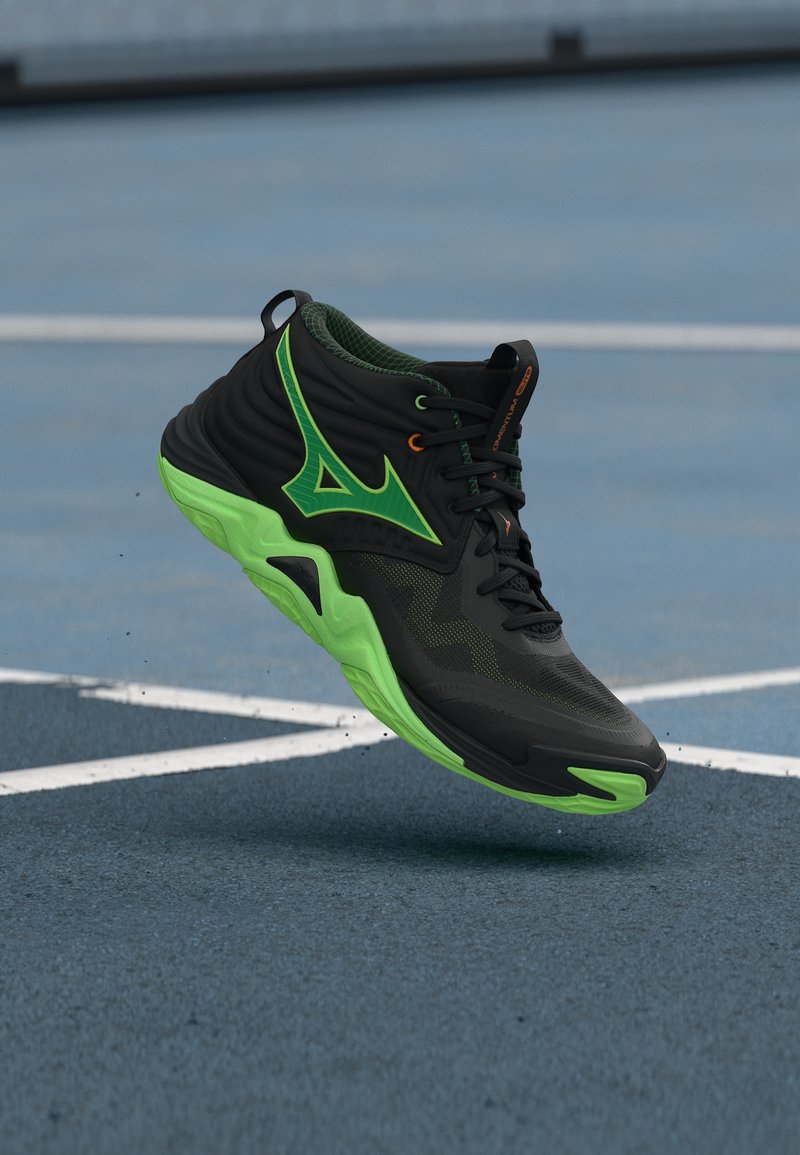 WAVE MOMENTUM ELITE MID UNISEX - Παπούτσια βόλεϊ - black/glowing apple/mandarin orange