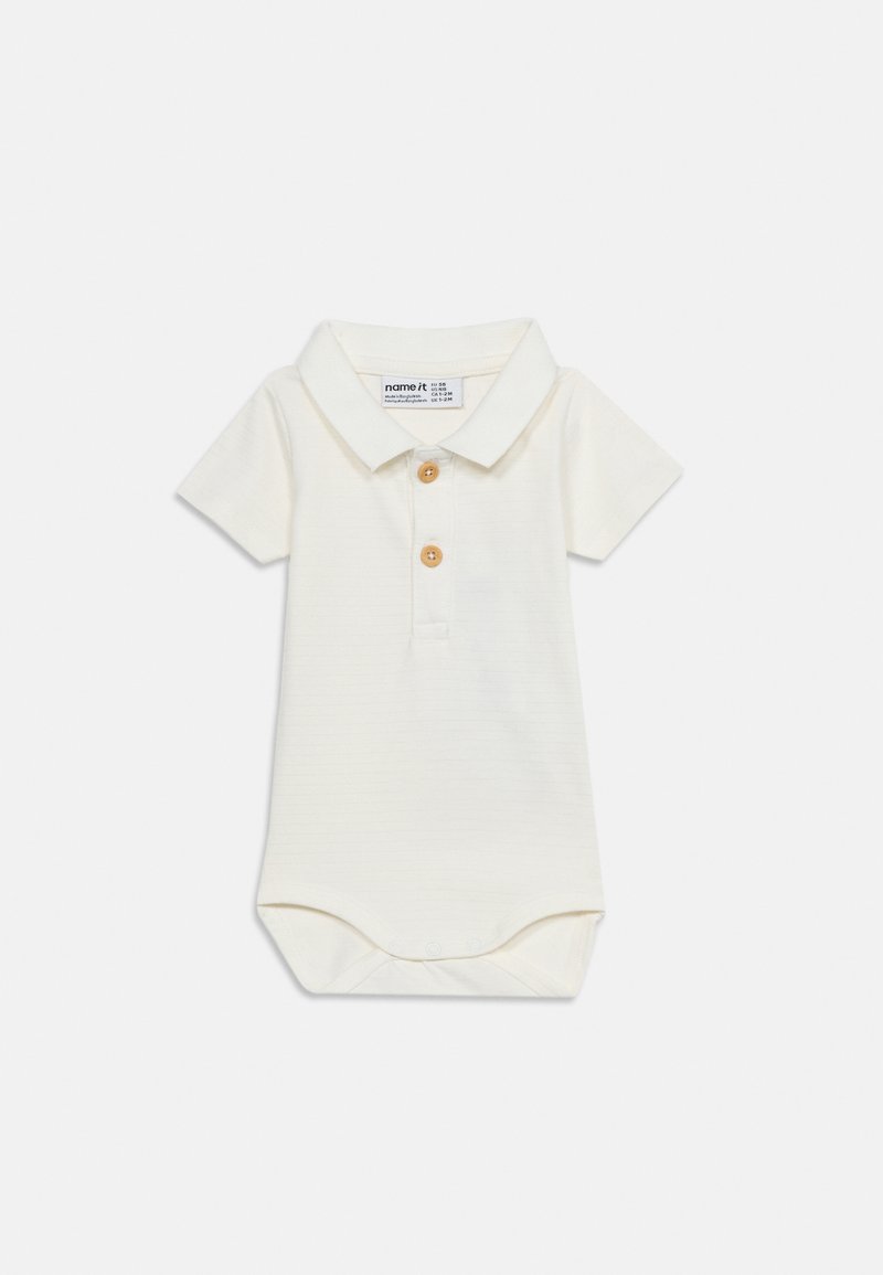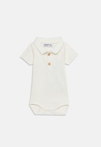 Σώμα μωρού σε κρεμ χρώμα με κοντά μανίκια, γιακά, δύο ξύλινα κουμπιά μπροστά και κούμπωμα με κουμπιά στο κάτω μέρος.