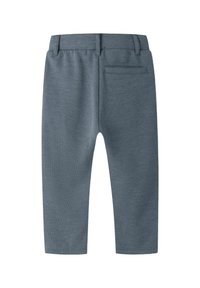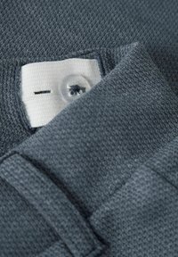 Γκρι υφαντό παντελόνι από βαμβάκι με ίσια γραμμή, πτυχές μπροστά, δύο πλαϊνές τσέπες και καφέ κουμπί στη ζώνη.