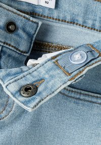 Τζιν βρεφικό παντελόνι σε ανοιχτό γαλάζιο με μπροστινό κουμπί, θηλιές για ζώνη και σχεδιασμό με πέντε τσέπες, διαθέτει ευθείες βάτες και διακριτικές ραφές.