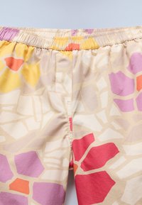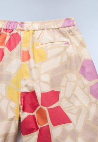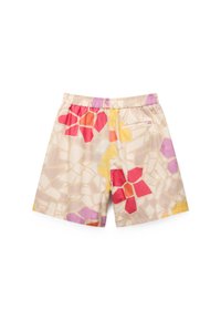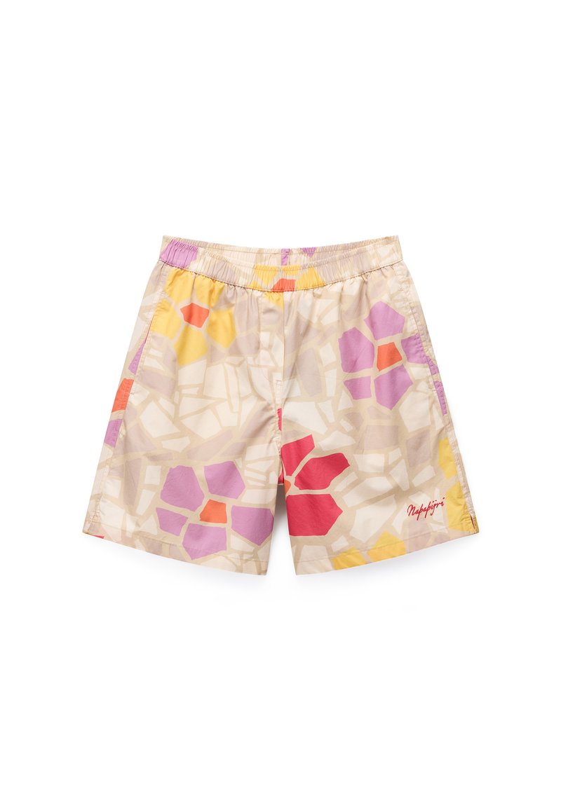 Μαγιό σορτς με σχέδια σε μπεζ χρώμα με πολύχρωμα σχήματα σε ροζ, κίτρινο και κόκκινο. Λάστιχο στη μέση με διακοσμητικό λογότυπο σε κόκκινο χρώμα.