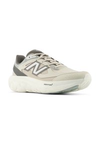 Μπεζ και γκρι αθλητικό παπούτσι New Balance με παχιά λευκή σόλα, πλεκτό επάνω μέρος και λογότυπο "Fresh Foam" στο πλάι.