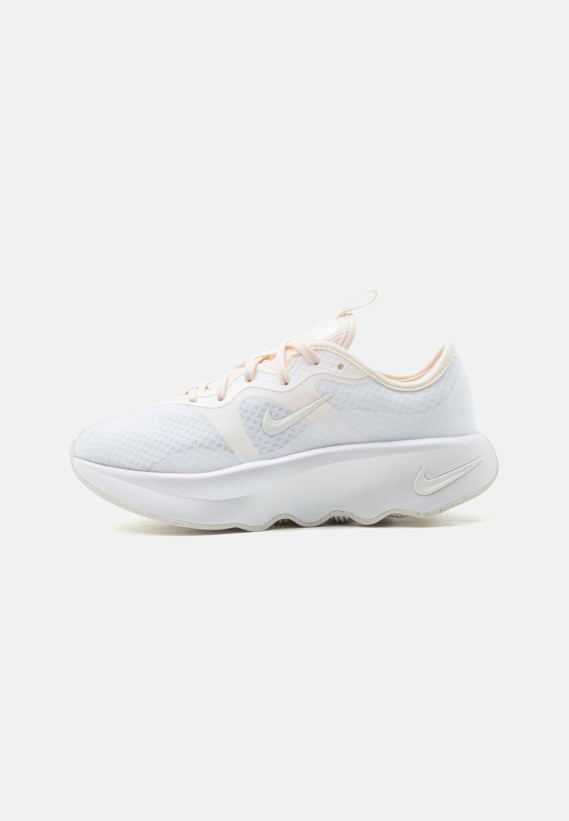 Λευκό αθλητικό παπούτσι με παχιά κυματιστή σόλα, επάνω μέρος από δίχτυ, κορδόνια και λογότυπα Nike swoosh στο πλάι και στη φτέρνα.