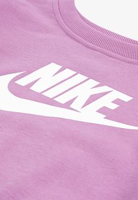 Ροζ φούτερ με στρογγυλή λαιμόκοψη, ριμπ μανσέτες και στρίφωμα. Διαθέτει λευκό λογότυπο Nike στο μπροστινό μέρος. Κατασκευασμένο από μαλακό, άνετο ύφασμα.