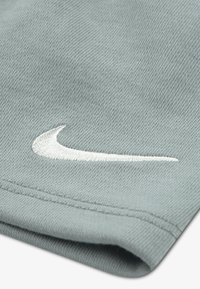 Λευκό κοντομάνικο μπλουζάκι Nike με γκρι λογότυπο Swoosh, σε συνδυασμό με γκρι σορτς με ελαστική μέση και λευκό λογότυπο Nike Swoosh.
