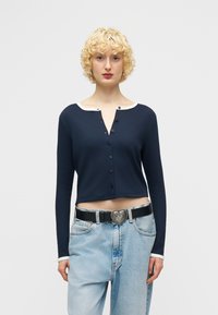 NMJUDY CONTRAST CARDIGAN - Ζακέτα - navy/cloud dancer