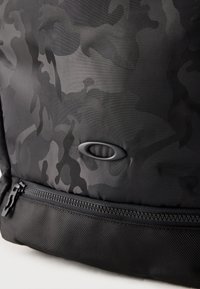 Μαύρο ορθογώνιο σακίδιο με διακριτικό καμουφλάζ, επάνω χερούλι, πολλαπλές θήκες με φερμουάρ και μικρό οβάλ λογότυπο μπροστά.