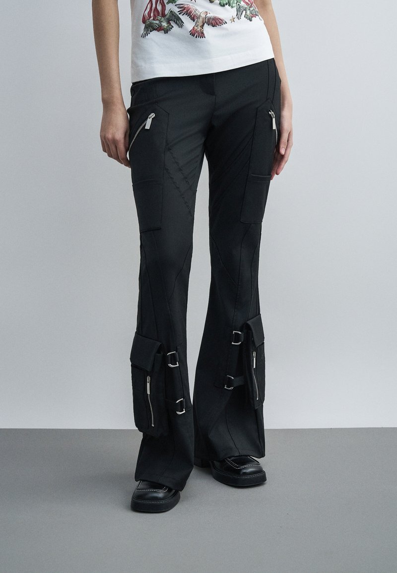 BELT FLARE PANTS - Παντελόνι - black