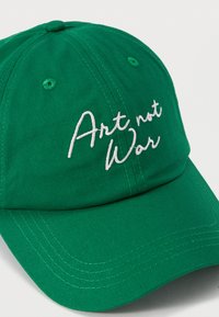 Πράσινο καπέλο μπέιζμπολ με λευκό κεντημένο κείμενο «Art not War» στο μπροστινό μέρος, εμφανίζεται σε απλό ανοιχτό φόντο.