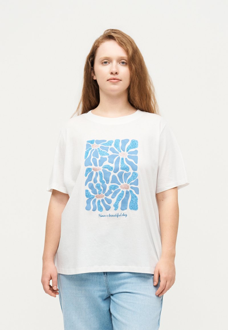 CARALBERTE BOXY TEE - Μπλουζάκι με στάμπα - bright white