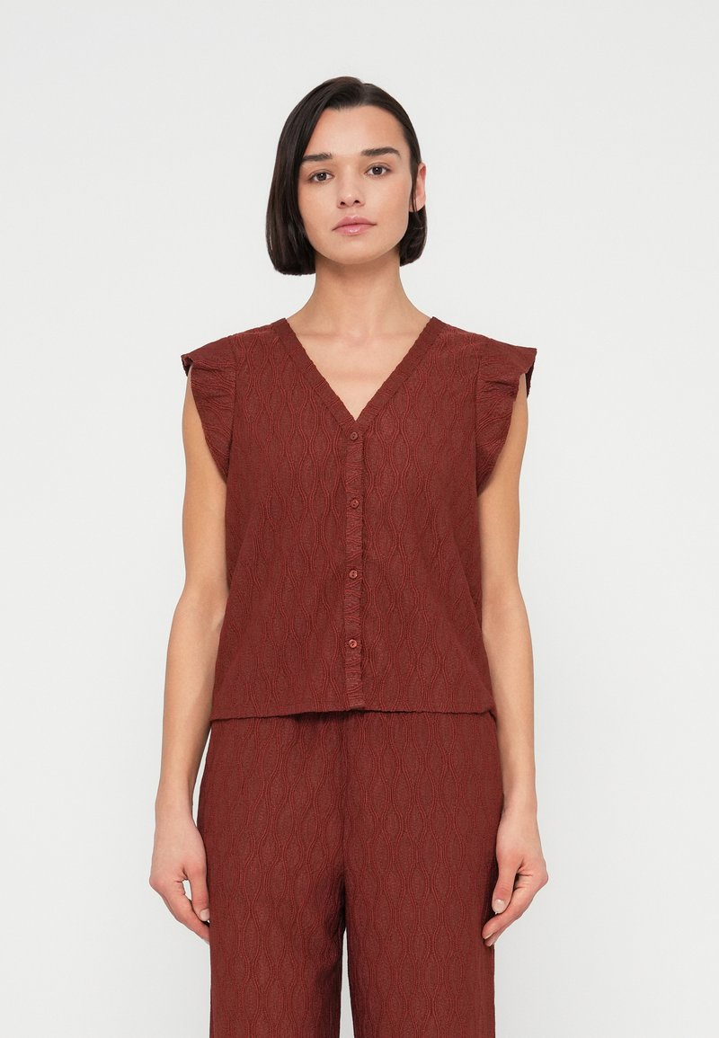 ONLAYA BUTTON V NECK - Μπλούζα - henna