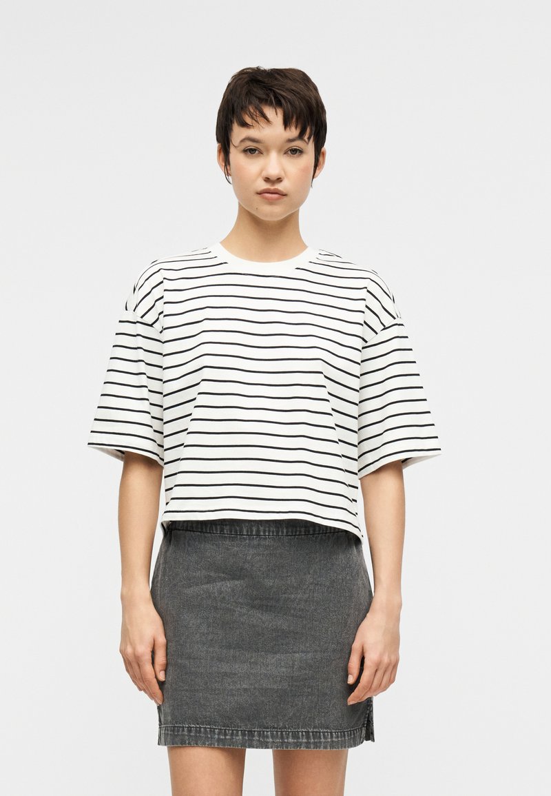 ONLBLOOM LOOSE SHORT - Μπλουζάκι με στάμπα - cloud dancer/black